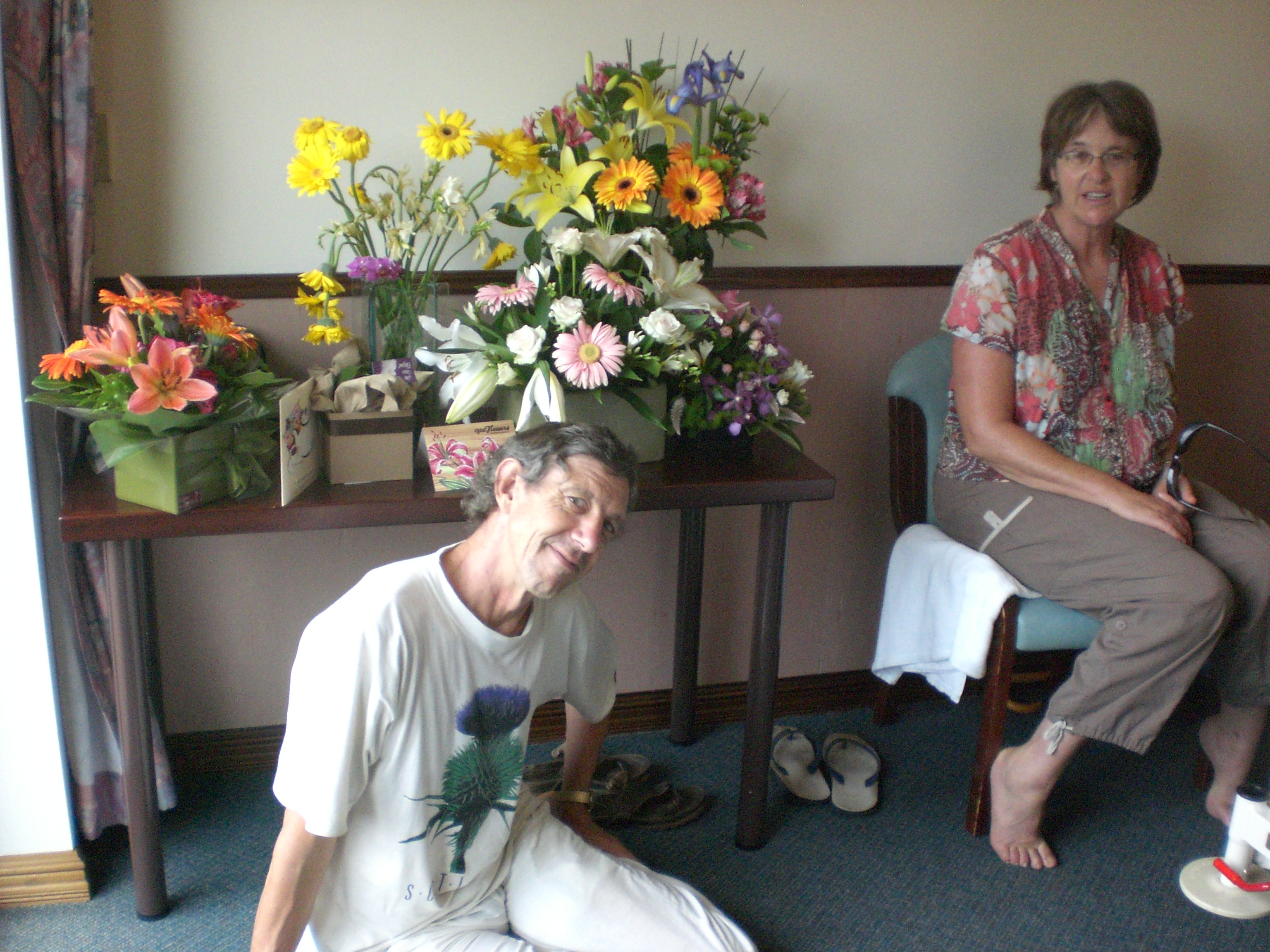 Pics: Beautiful flowers from family & friends/Sara & Ian/Brett & Felix (Fee’s sucking on a syringe – don’t worry no needle). At Mater Private I had my own room, bathroom and balcony, which was all rather nice.